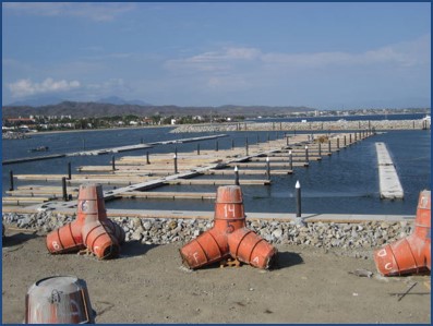 – Construcción de Marina con muelles flotantes de concreto.